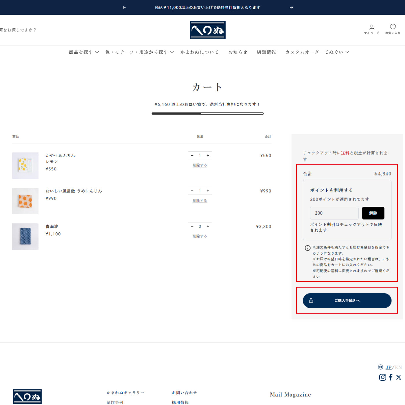 株式会社かまわぬ オンラインストア係