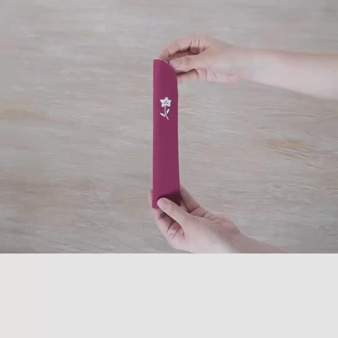 露草や桔梗など夏の草花をオリエンタルな雰囲気が漂う更紗風に表現しました。赤紫色のカラーと独特な様式の模様は、海外の方への贈り物としてもおすすめです。